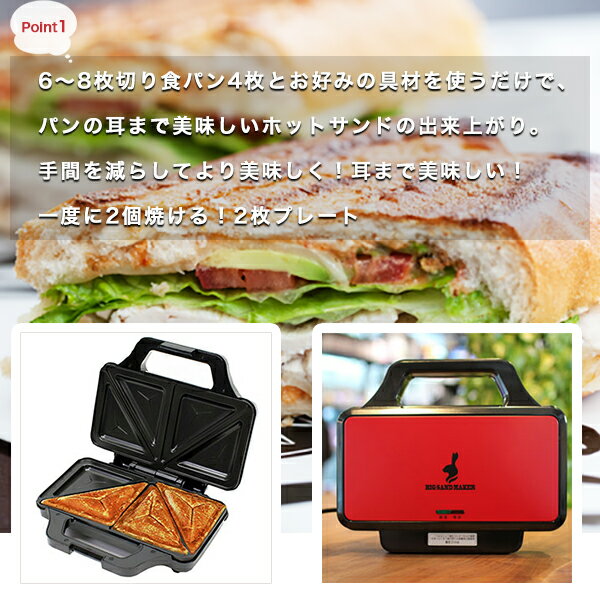 商品詳細 商品説明 全国送料無料!(沖縄、離島は出荷不可となります) 【パンの耳まで焼ける】ビッグホットサンドメーカー。